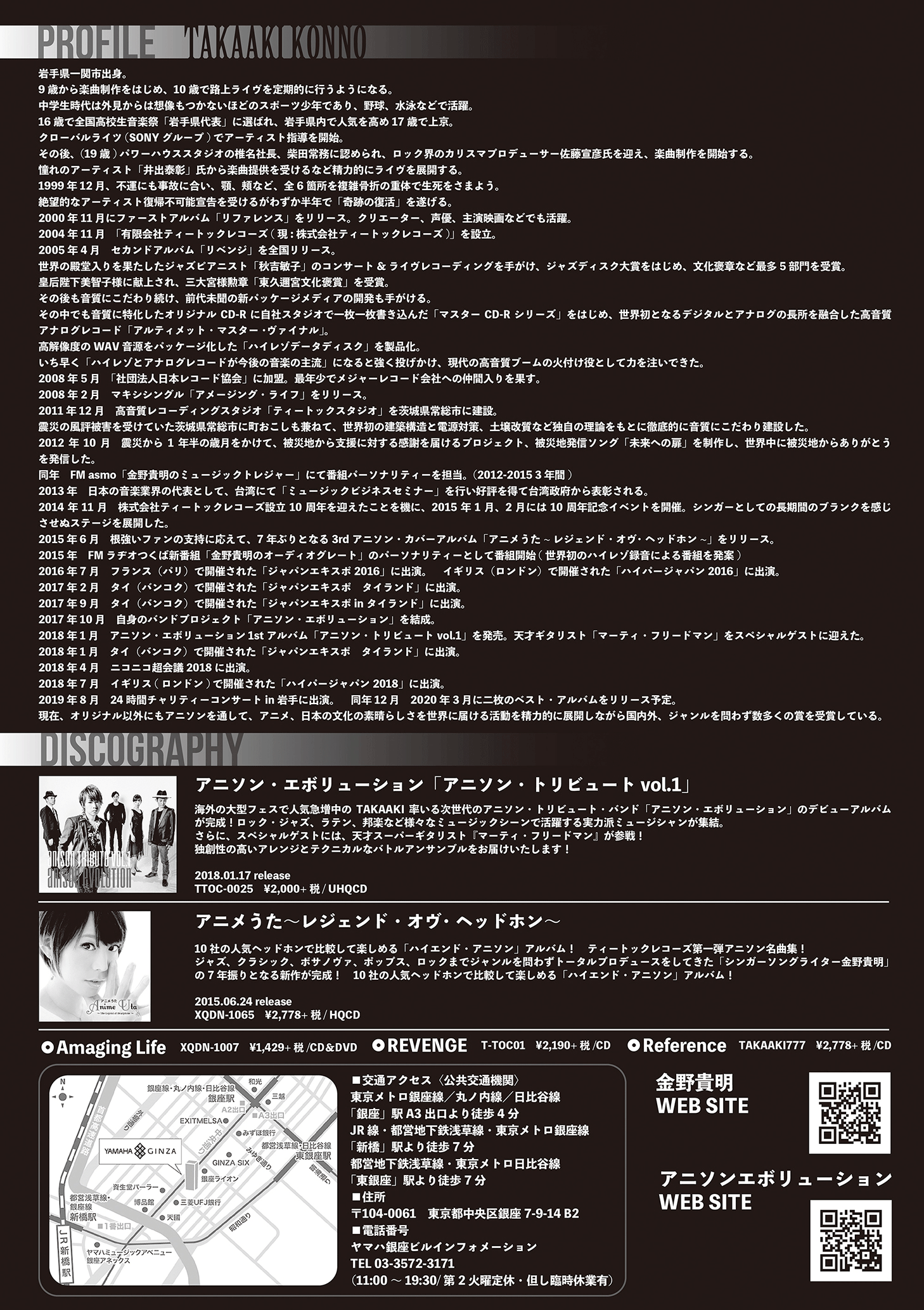 「出演ミュージシャン」 金野貴明 (Vo&Gt) / 菅沼孝三(Drums) / 矢堀孝一(Gt) / MASAKI (Bass / Special Guest) 岸 淑香(Piano&Key) / Hiromi★(Piano&Key) / 片野吾朗(Bass) / 渡邊香澄(25絃箏) 相原雅美 (Sax&Cl) / Yu Art (Sax&Piano) / REV (Vo&Bass)